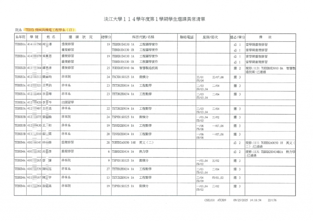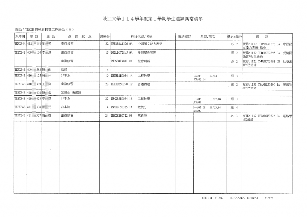 (選課異常清單如下)